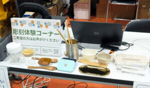 「この素材に彫刻できるかな?」「実際の仕上がりを見てみたい」というお声にお応えし、ブース内でのデモンストレーションを実施します。